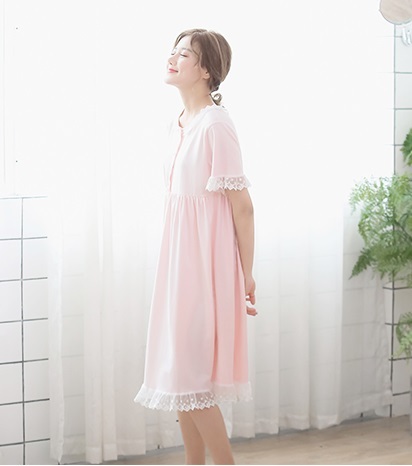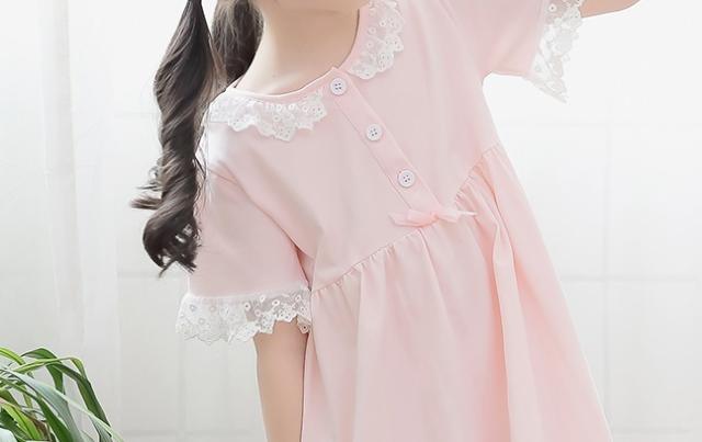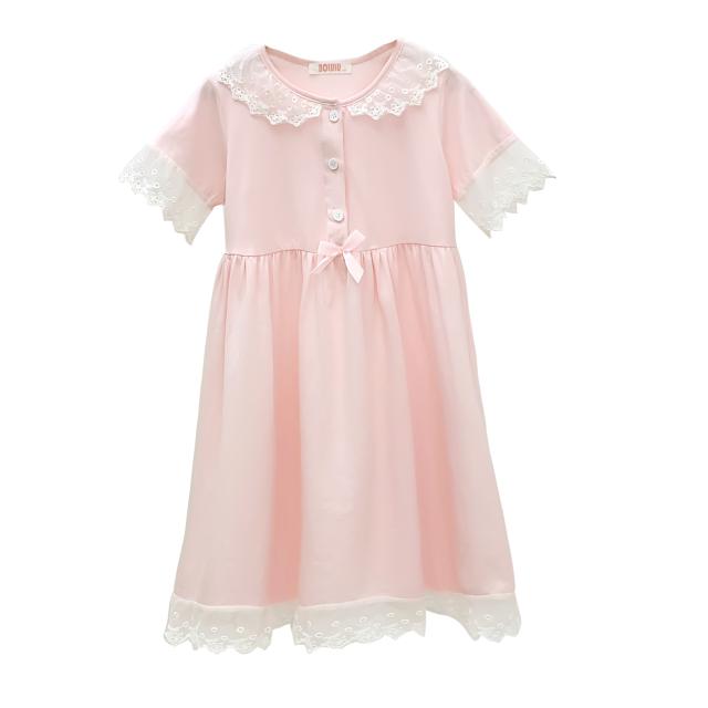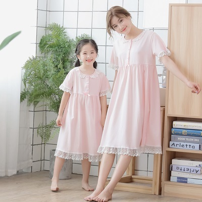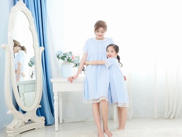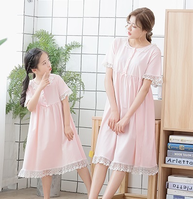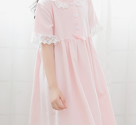 親子 ルームウェア パジャマ 寝巻き ワンピース 半袖 長袖 袖あり 襟付き ポケット フロントボタン フリル レース リボン 綿 コットン ゆったり ゆる ルーズ お揃い ペア かわいい 可愛い ラブリー キュート スウィート おしゃれ お洒落 部屋着 お泊り 休日 旅行 子供 こども