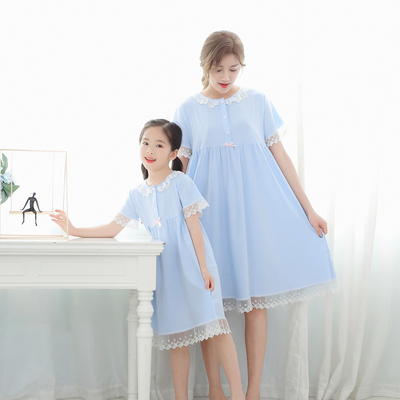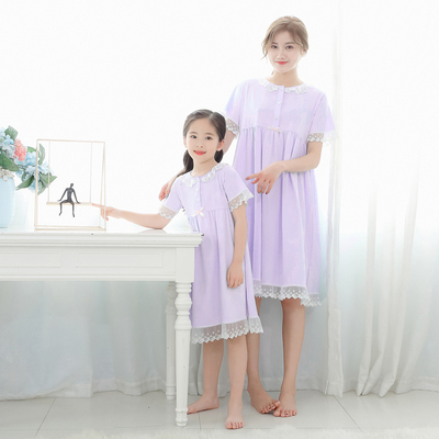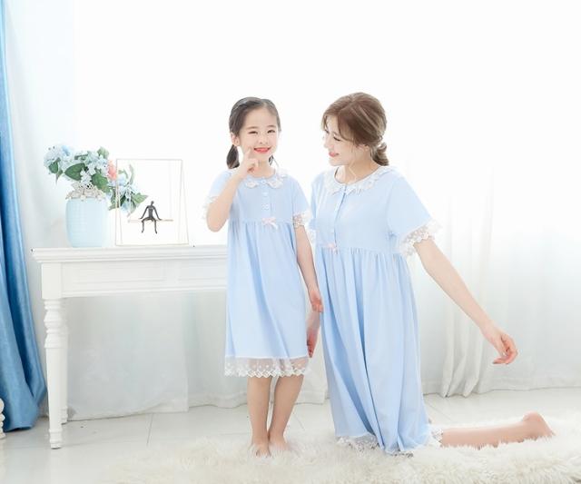 親子 ルームウェア パジャマ 寝巻き ワンピース 半袖 長袖 袖あり 襟付き ポケット フロントボタン フリル レース リボン 綿 コットン ゆったり ゆる ルーズ お揃い ペア かわいい 可愛い ラブリー キュート スウィート おしゃれ お洒落 部屋着 お泊り 休日 旅行 子供 こども 子ども ママ 大人 レディース キッズ 女の子 10代 20代 春 夏 秋 100cm 110cm 120cm 130cm 140cm 150cm 160cm ワンサイズ ピンク ライトブルー 水色 ライトパープル 紫