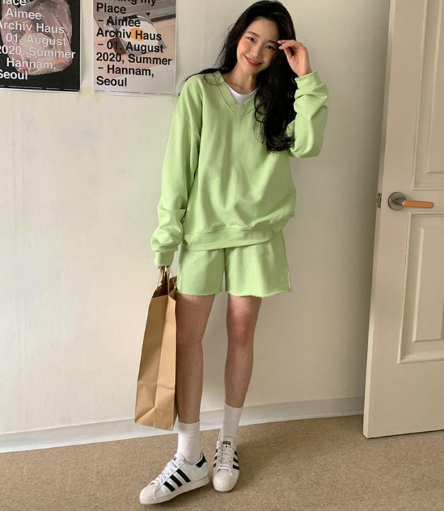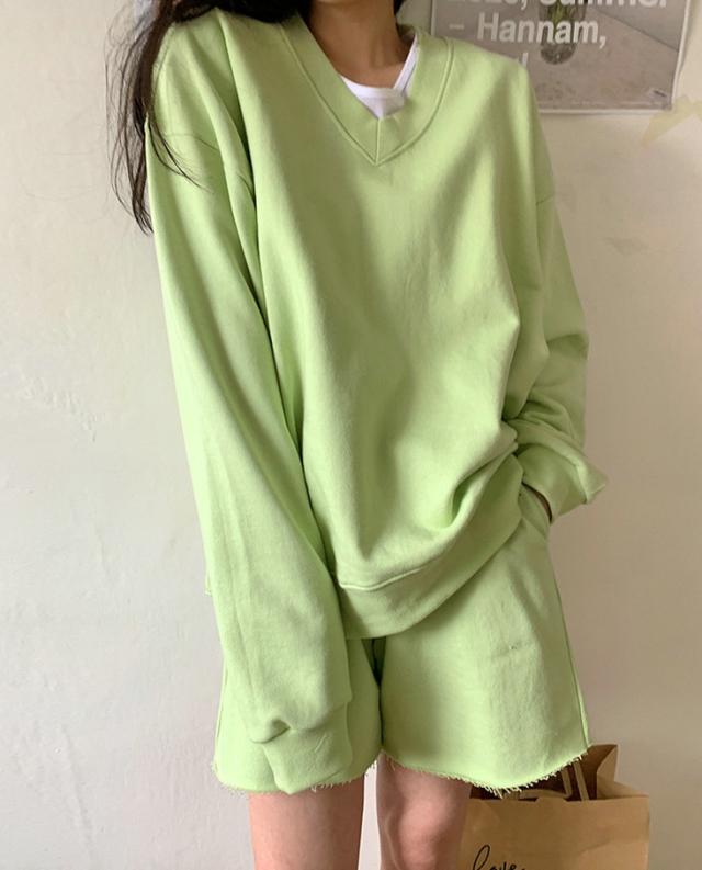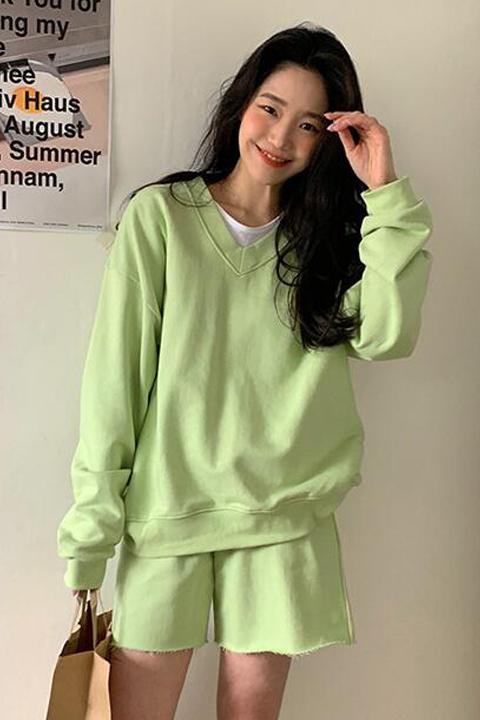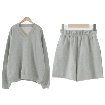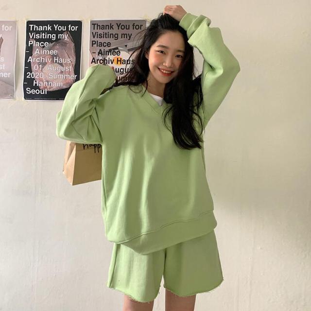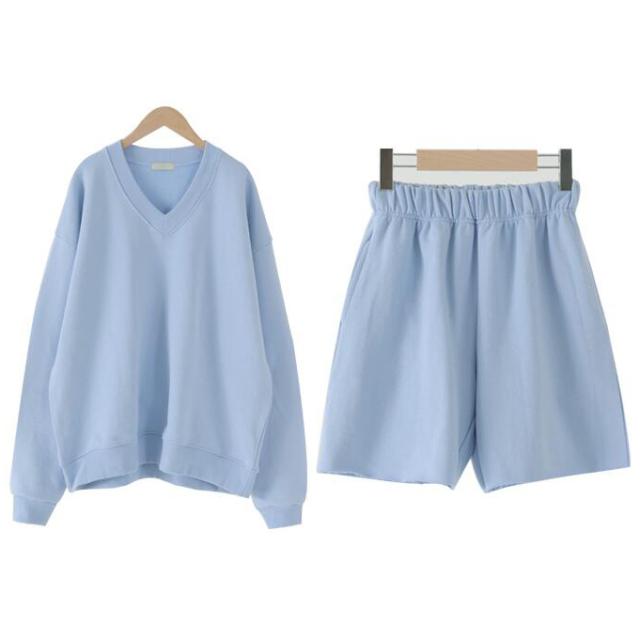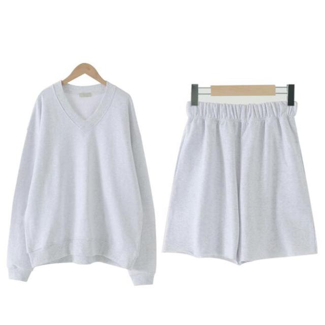 ?Xネックスウェット ショートパンツ セットアップ トレーナー ショートパンツ ショート ショート丈 袖あり 長袖 Vネック ウエストゴム 綿 上下セット 2点セット ツーピース かわいい 大人可愛い シンプル カジュアル 大人 おしゃれ お洒落 大人可愛い 大人女子 こなれ感 ラフ ルーズ 個性的 主役級 存在感 無地 春 秋 10代 20代 30代 レディース 学生 通学 デート お出かけ 公園デビュー 女子会 休日 着回し 普段使い 重ね着 韓国 韓国系 色展開 黒 ブラック ブルー グリーン グレー