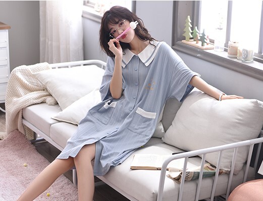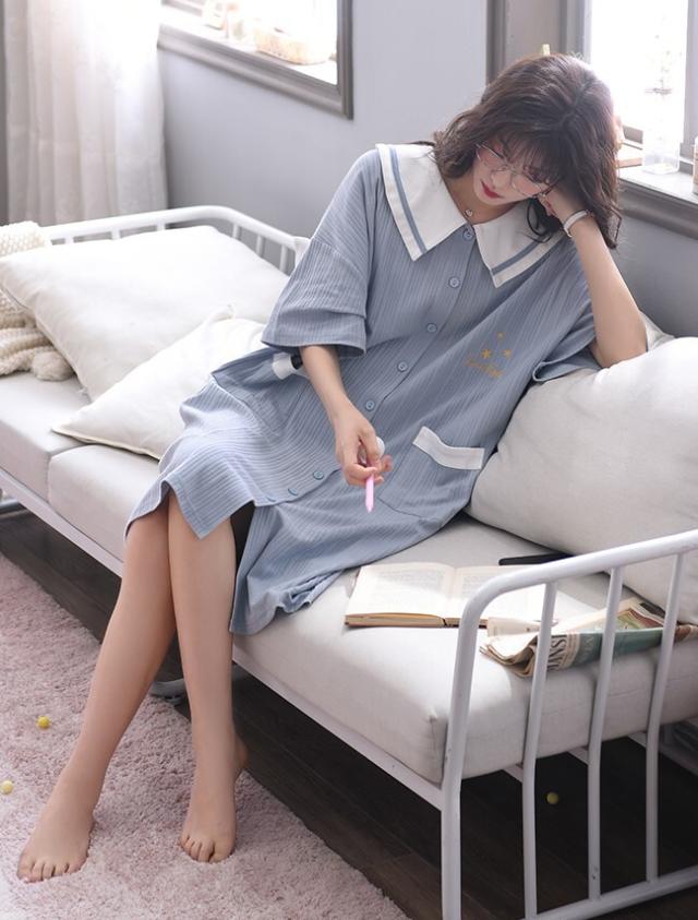 レディースルームウェア ワンピース 膝丈 ミディ丈 半袖 ビッグカラー ポケット付き 前開き シャツワンピース パジャマ ナイトウェア 部屋着 寝間着 ネグリジェ 夏 大人可愛い 大人女子 おしゃれ お洒落 おうちコーデ おうち時間 リラックスウェア 旅行 お泊まり リゾート バカンス 休日 インスタ映え うさぎ耳 キュート ラブリー ガーリー カラー ブルー サイズ展開 M L XL 2XL