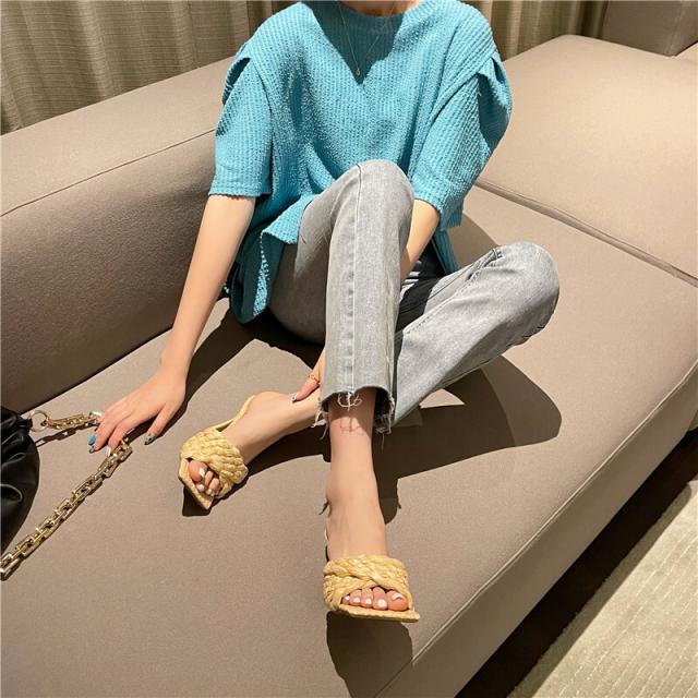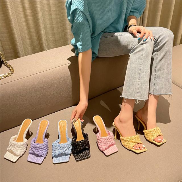 ミュール ヒール サンダル 編み込み 6色展開 春 夏 ヒールサンダル スクエアトゥ PU 履きやすい 美脚 シンプル 大人 女子 かわいい きれいめ カジュアル おしゃれ ラブリー キュート ガーリー フェミニン 存在感 通勤 学生 お出かけ 普段使い デート 旅行 女子会 休日