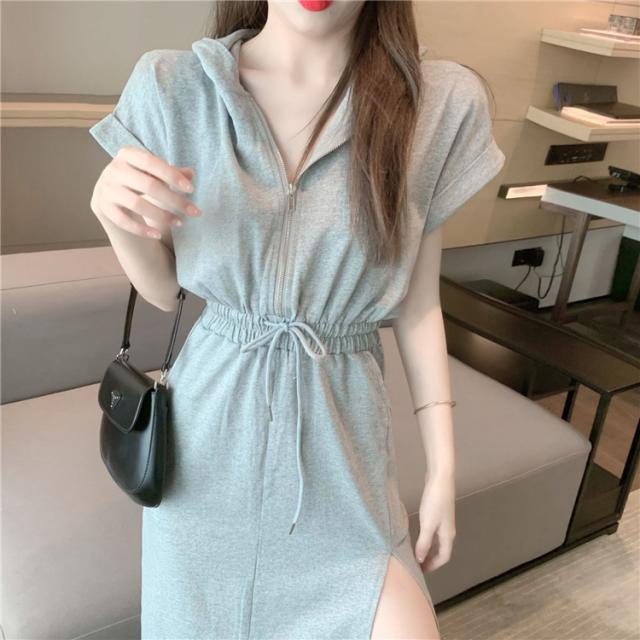 スウェットドッキングワンピース ワンピース ミモレ ミモレ丈 袖あり Vネック ウエストマーク スリット サイドスリット フード付き ファスナー かわいい 大人可愛い シンプル カジュアル おしゃれ お洒落 かっこいい 大人可愛い 大人女子 こなれ感 ラフ メンズライク ボーイ