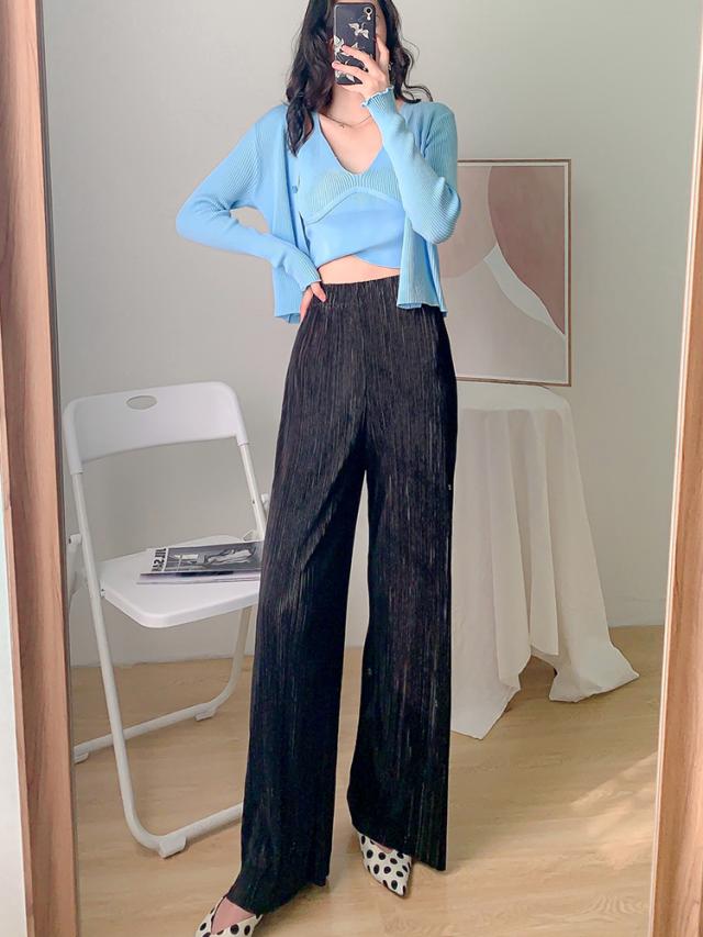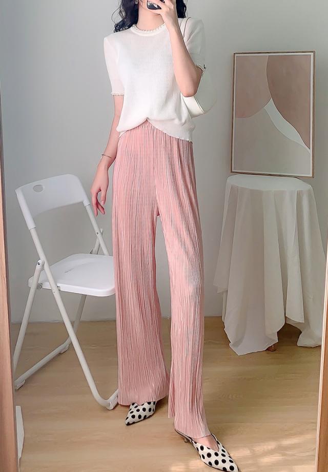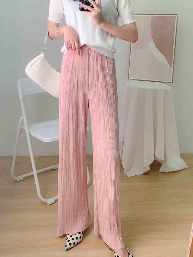 プリーツ パンツ レディース カジュアル ファッション ロング ワイドレッグ ボトムス 春 夏 ハイウエスト ストレート ズボン 無地 薄手 柔らかい ドレープ ゆったり ルーズ 抜け感 シンプル こなれ感 大人 かわいい クール 着回し 通勤 学生 おうち時間 お出かけ 普段使い
