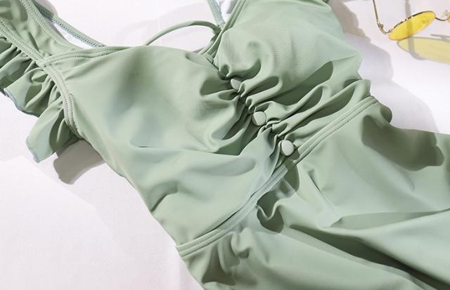 水着 ワンピース バックシャン フリル レースアップ ビキニ バックリボン 大人 女子 かわいい きれいめ 甘め セクシー フェミニン シンプル カジュアル おしゃれ 美シルエット ラブリー キュート ガーリー 存在感 レディライク 海 プール 2色 ブルー グリーン M L XL 2XL