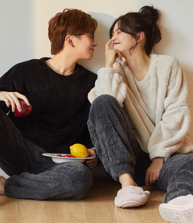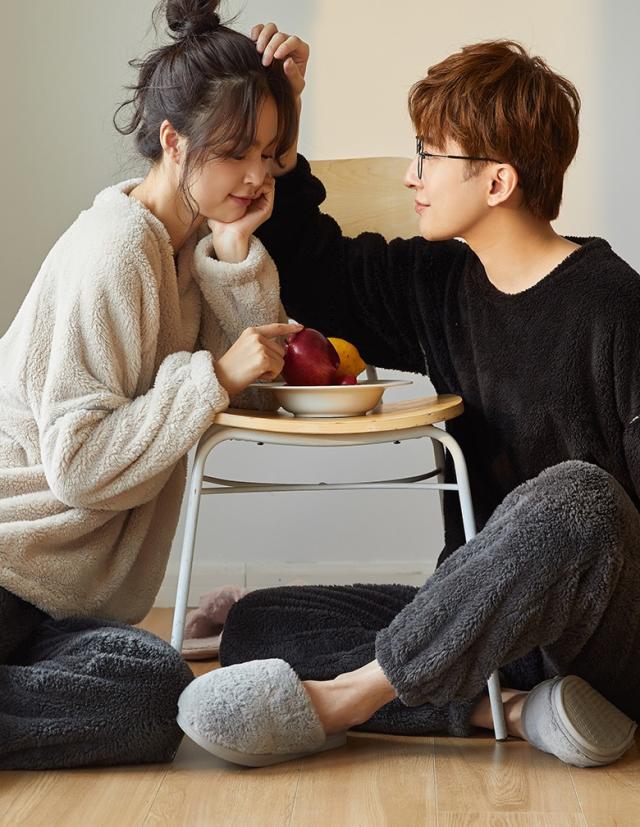パジャマ もこもこ ルームウェア 長袖 ズボン ロング丈 秋 冬 パジャマ 部屋着 寝巻き ナイトウェア ウエストゴム ラウンドネック ふわふわ 上下 2点セット ツーピース ゆったり 大人 女子 かわいい シンプル カジュアル おしゃれ キュート ラフ おうち時間 休日 お泊り