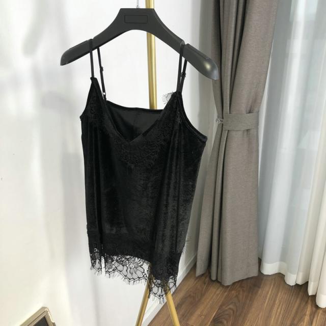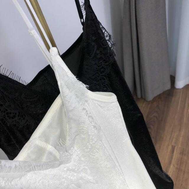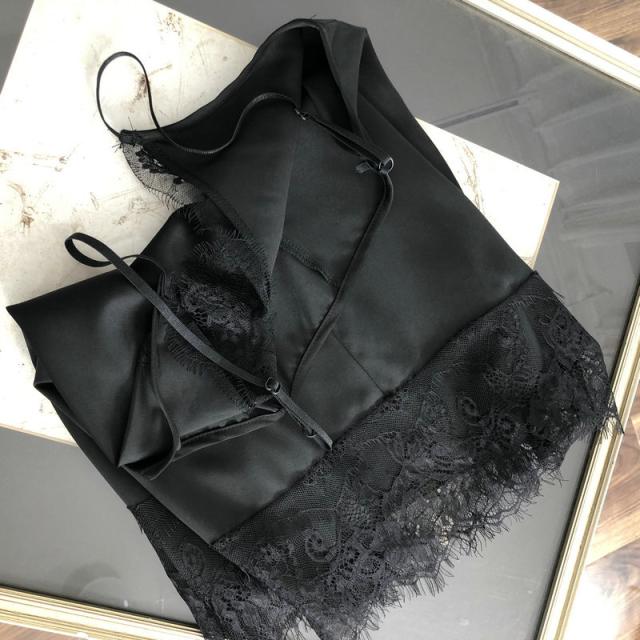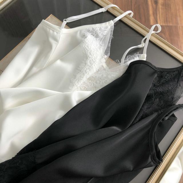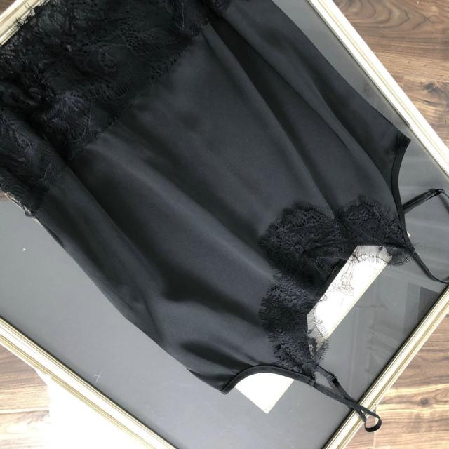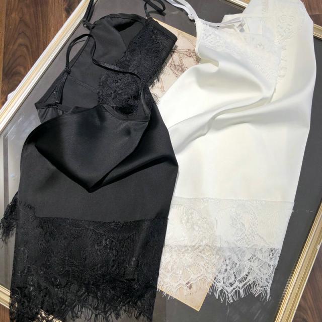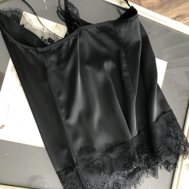 大人可愛いサテン×花柄刺?レースのキャミソール♪