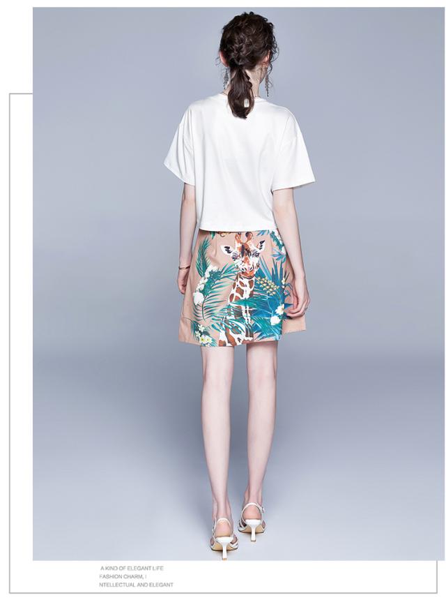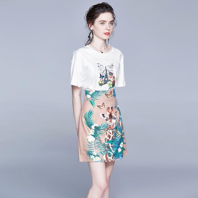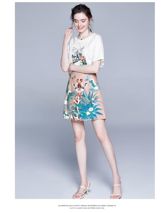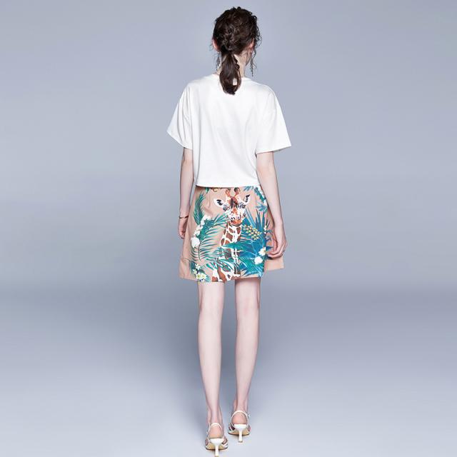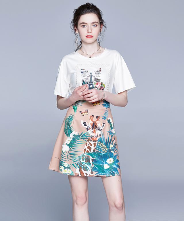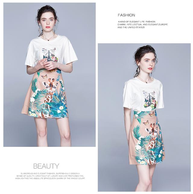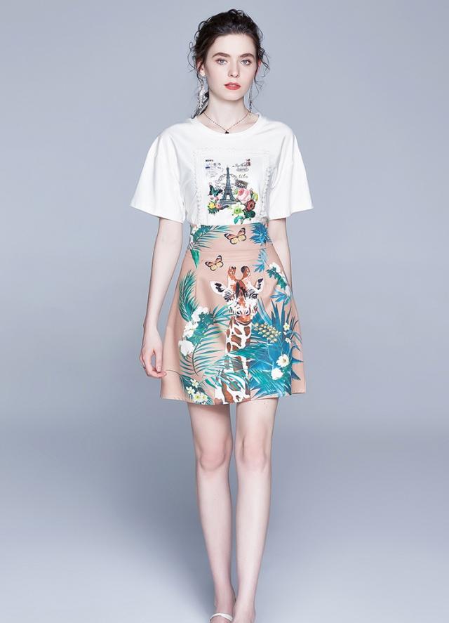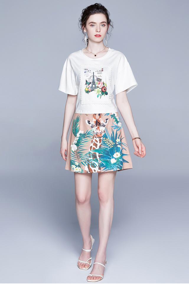 ボタニカルプリントTシャツ スカート セットアップ ミニ ミニ丈 袖あり 半袖 ラウンドネック フレア ハイウエスト ポリエステル 上下セット 2点セット ツーピース かわいい 大人可愛い 大人 おしゃれ お洒落 大人可愛い 大人女子 ラブリー キュート ガーリー 個性的 主役級 存在感 柄 ボタニカル 春 夏 10代 20代 30代 レディース 学生 通学 デート お出かけ 女子会 休日 着回し 普段使い サイズ M L XL 2XL 白 ホワイト