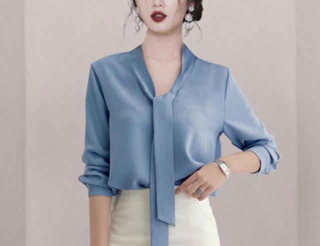 トップス 2色展開 シャツ ブラウス シフォンシャツ コミューターシャツ ストリーマーシャツ 袖あり 長袖 Vネック 襟なし タイ ネクタイ 細身 シフォン リボン 大人可愛い きれいめ シンプル 上品 おしゃれ お洒落 こなれ感 無地 春 夏 秋 冬 オールシーズン 10代 20代 30代 40代 レディース ママ オフィス ビジネス OL 通勤 ホテル レストラン ディナー 韓国 オルチャン S M L XL 2XL ブルー ワインレッド
