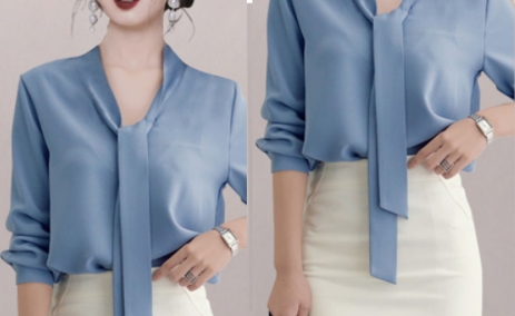 トップス 2色展開 シャツ ブラウス シフォンシャツ コミューターシャツ ストリーマーシャツ 袖あり 長袖 Vネック 襟なし タイ ネクタイ 細身 シフォン リボン 大人可愛い きれいめ シンプル 上品 おしゃれ お洒落 こなれ感 無地 春 夏 秋 冬 オールシーズン 10代 20代 30代 4