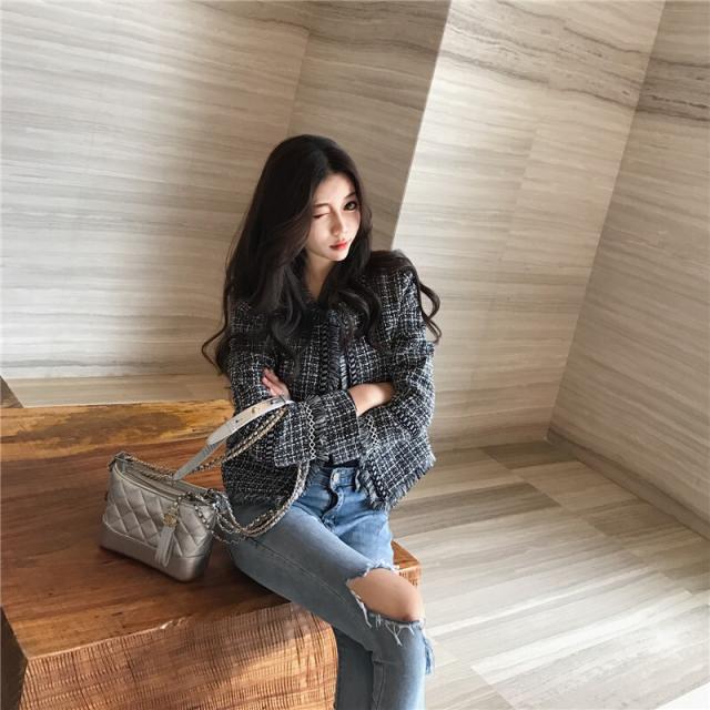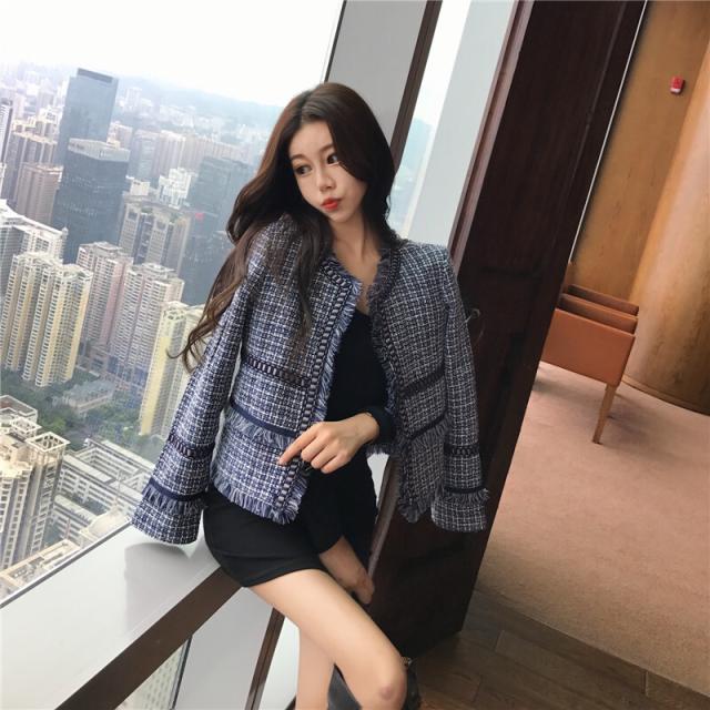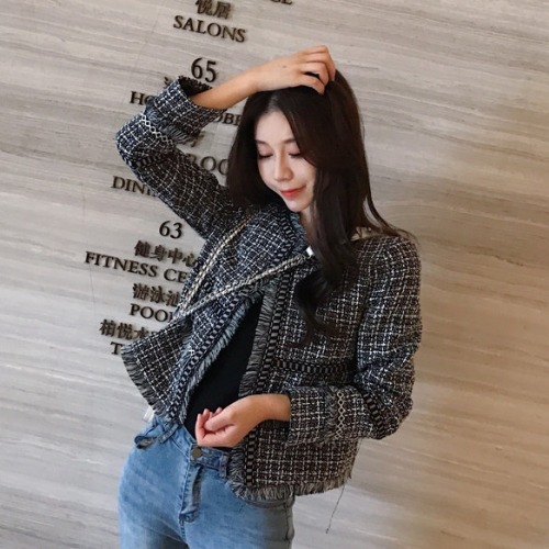 ツイード ジャケット アウター 上着 ショート ショート丈 袖あり 長袖 ラウンドネック 襟なし 前開き かわいい 大人可愛い きれいめ カジュアル 大人 上品 おしゃれ お洒落 大人女子 主役級 柄 チェック柄 格子柄 春 秋 冬 10代 20代 30代 レディース 通勤 学生 通学 デート お出かけ 女子会 休日 旅行 着回し 普段使い 重ね着 韓国 韓国系 オルチャン サイズ S M L XL 色展開 黒 ブラック 青 ブルー