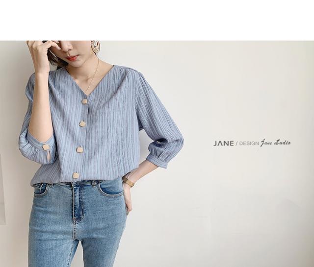 ネック七分袖ブラウス トップス ブラウス 袖あり 7分袖 七分袖 Vネック 前開き かわいい 大人可愛い きれいめ シンプル カジュアル 大人 おしゃれ お洒落 大人可愛い 大人女子 こなれ感 ラブリー キュート ガーリー 個性的 クール 主役級 存在感 無地 0 春 夏 秋 10代 20代