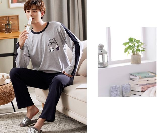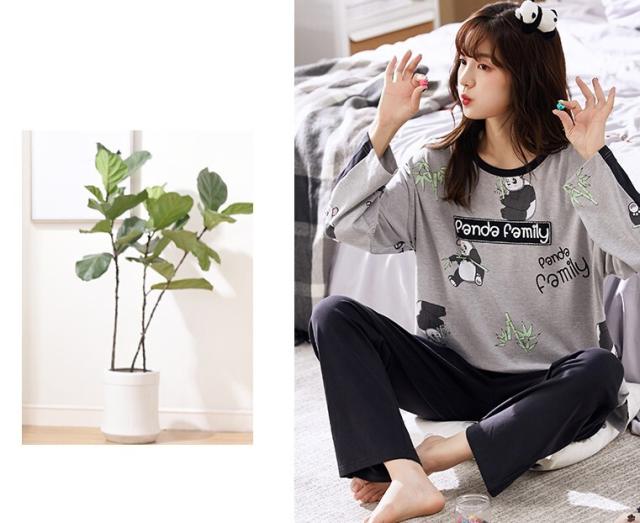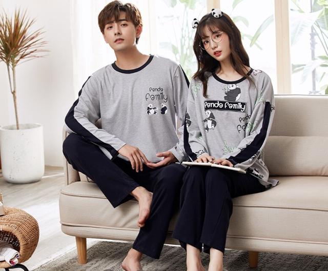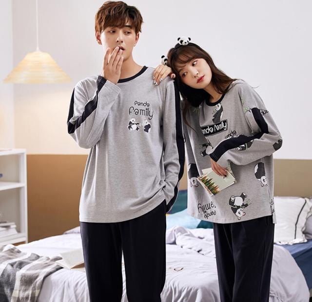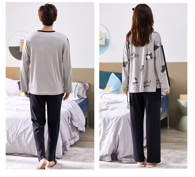 ペアパジャマ メンズ レディース カップル 上下セット お得 男性用 女性用 長袖 ラウンドネック サイドスリット アニマル プリント パンダ ドロップショルダー ルーム ナイトウェア 部屋着 寝間着 春秋 おうち時間 夜 お泊り デート ゆったり ラフ ルーズ 学生 夫婦