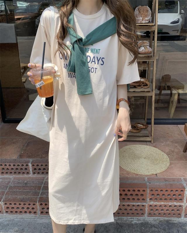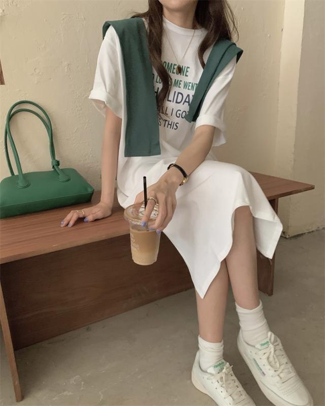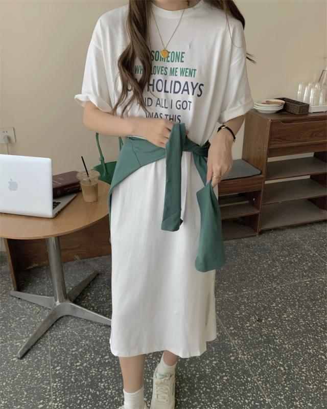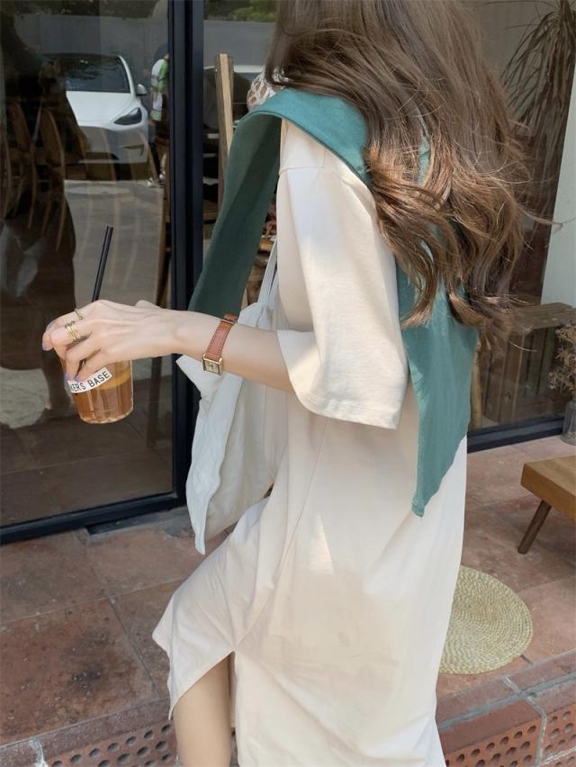 ショール付Tシャツワンピース ワンピース 膝丈 ひざ丈 膝下 袖あり 半袖 ラウンドネック フレア スリット サイドスリット 2点セット ツーピース かわいい 大人可愛い シンプル カジュアル 大人 おしゃれ お洒落 かっこいい 大人可愛い 大人女子 こなれ感 ラフ ラブリー キュート ガーリー 主役級 存在感 無地 春 夏 10代 20代 30代 レディース 学生 通学 デート お出かけ 女子会 休日 着回し 普段使い 韓国 韓国系 サイズ S M L 色展開 白 ホワイト アプリコット