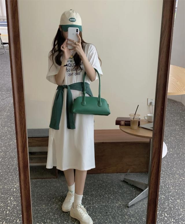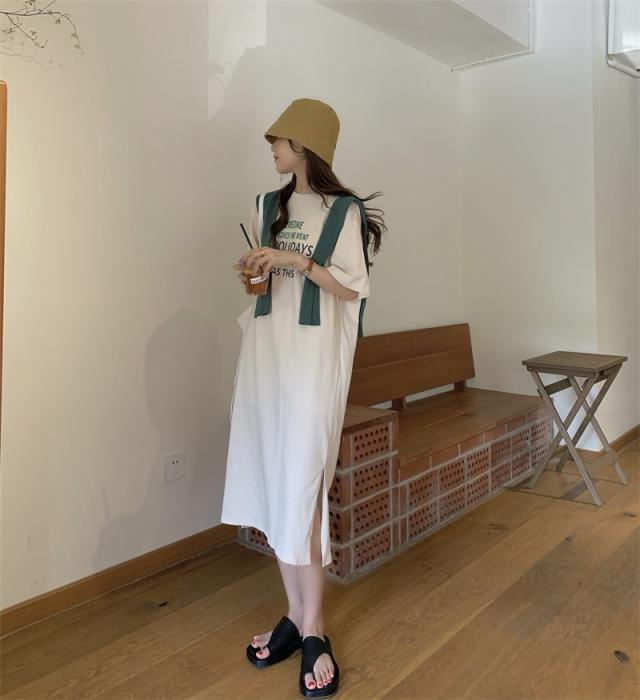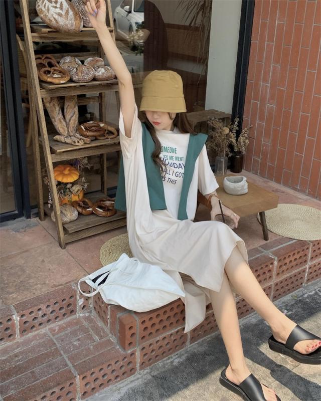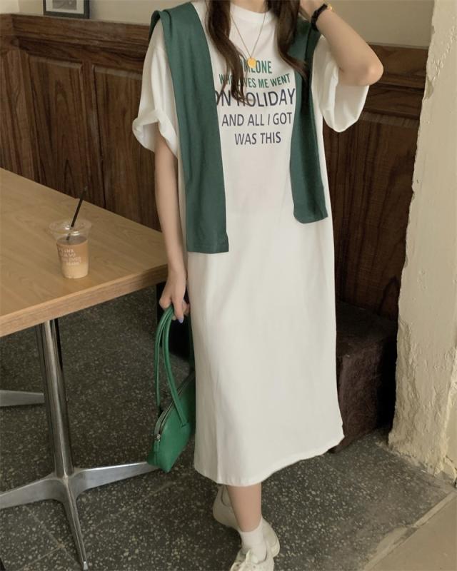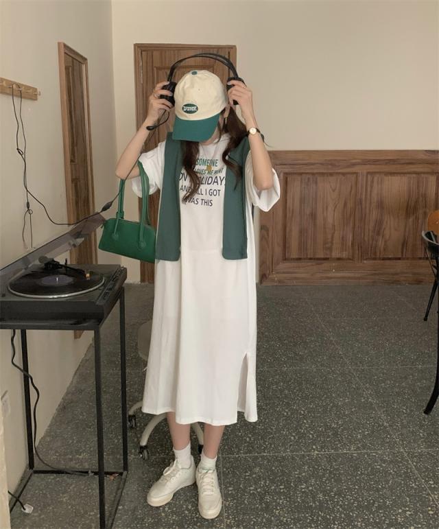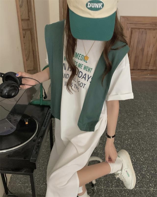 ワンピース レディース カジュアル ファッション ショール付 Tシャツ 膝丈 袖あり 半袖 ラウンドネック フレア サイドスリット 2点セット お得 大人 可愛い シンプル おしゃれ かっこいい 女子力 こなれ感 ラフ ゆったり キュート 休日 お出かけ 旅行 デート 学生 通学 夏