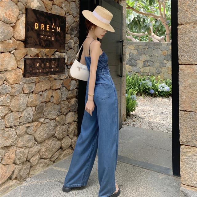 レディースサロペット ハイウエスト ワイドパンツ キャミソール ポケット付き デニム ギャザー 無地 オールインワン オーバーオール ジャンプスーツ 夏 大人可愛い 大人女子 おしゃれ お洒落 カジュアルコーデ シンプルコーデ 重ね着 レイヤードスタイル 海 プール ビーチ リゾート バカンス 旅行 お泊まり 通学 学生 大学生 キャンパスコーデ デートコーデ ママコーデ 動きやすい 着回し カラー ブルー サイズ展開 S M