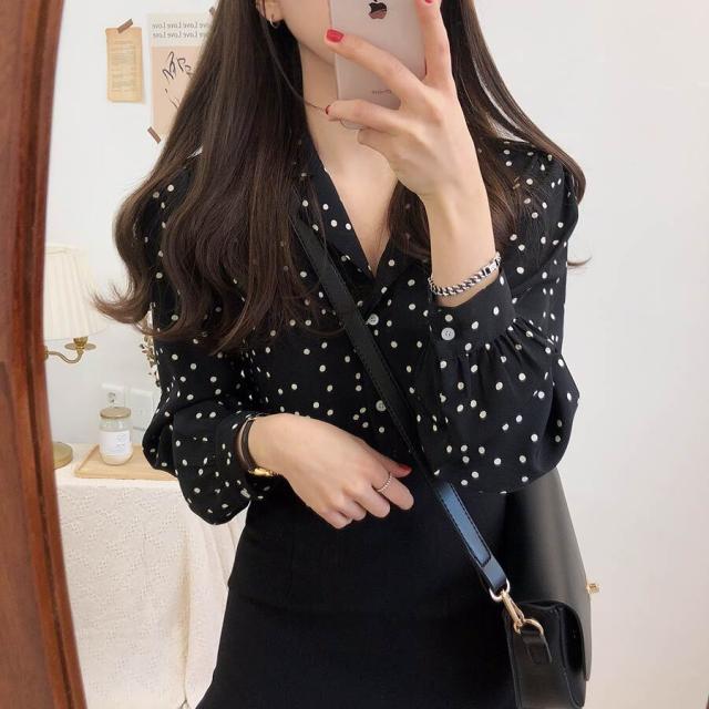 レディースブラウス 長袖 開襟シャツ ドット柄 前開き シャツ トップス 春 秋 大人可愛い 大人女子 おしゃれ お洒落 カジュアルコーデ ガーリーコーデ レトロ 古着風 とろみ感 ルーズ ゆる キュート 通学 学生 大学生 キャンパスコーデ デートコーデ お出かけ 女子会 着回し インスタ映え 大きめサイズ プラスサイズ カラー ブラック サイズ展開 S M L XL 2XL 3XL 4XL 5XL
