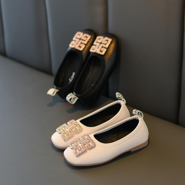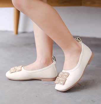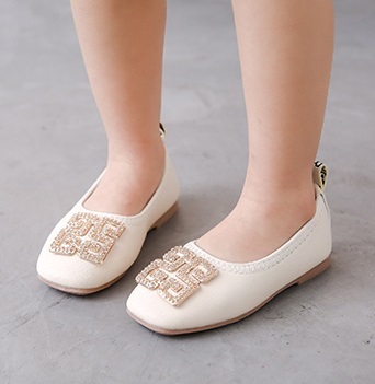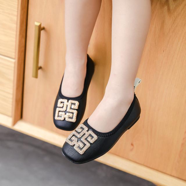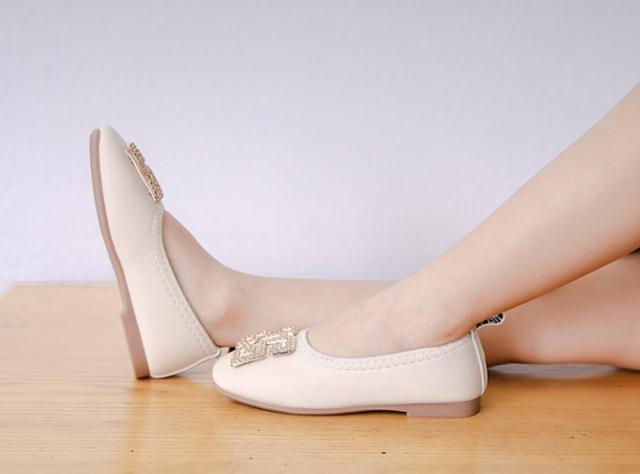 シューズ キッズ レディース カジュアル パンプス 靴 ぺたんこ PU レザー 皮革 ソフト スクエアトゥ フロント デザイン 装飾 フラット 履きやすい 歩きやすい 滑り止め 子供 女の子 かわいい お洒落 通学 通園 小学生 お出かけ 行事 結婚式 シンプル 上品 華やか