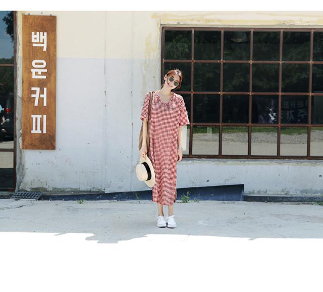 ギンガムチェックワンピース ワンピース ロング ロング丈 袖あり 半袖 ラウンドネック スリット サイドスリット 綿 麻 リネン かわいい 大人可愛い きれいめ シンプル カジュアル 大人 おしゃれ お洒落 レトロ 大人可愛い 大人女子 こなれ感 ラブリー キュート ガーリー 主役級 存在感 柄 チェック柄 春 夏 10代 20代 30代 レディース 学生 通学 デート お出かけ 女子会 休日 着回し 普段使い 韓国 韓国系 サイズ S M L XL 色展開 赤 レッド