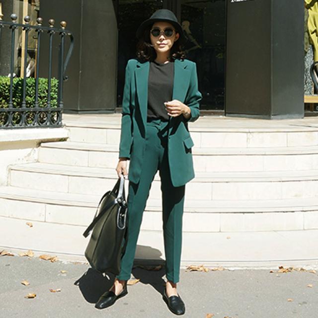 スーツ セットアップ レディース パンツ オールシーズン ジャケット 長袖 襟付き センタープレス 上下 2点セット きれいめ シンプル カジュアル 大人 おしゃれ かっこいい こなれ感 マニッシュ クール 主役級 存在感 着回し フォーマル 通勤 ビジネス OL 学生 無地 グリーン