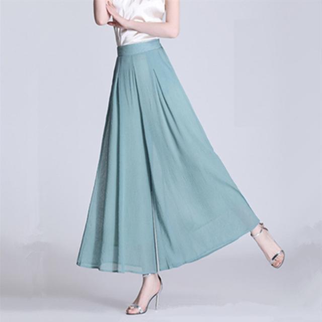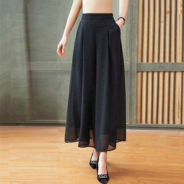ガウチョパンツ レディース カジュアル ボトムス シフォン ワイドレッグ ハイウエスト プリーツ Aライン マキシ丈 ゆったり 透け感 シースルー ドレープ 無地 シンプル 楽ちん 上品 きれいめ 大人 可愛い 女子力 おしゃれ 通勤 通学 休日 お出かけ デート 春 夏