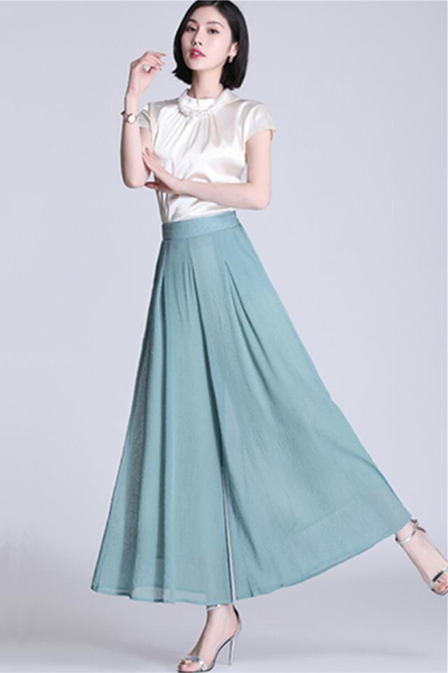 シフォン素材のふんわり涼し気シルエットがシーズンムードを高めるガウチョパンツ♪