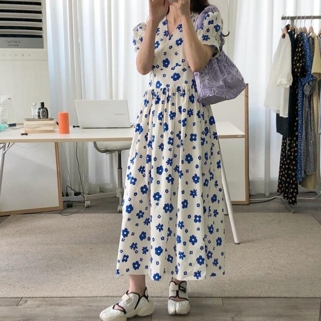 ちょっとしたお出かけにピッタリな可愛らしいフラワープリントのワンピース。