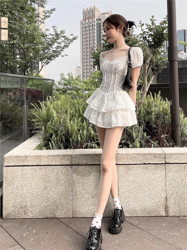 パンチングレースオールインワン ボトムス オールインワン ミニ ミニ丈 ショート ショート丈 袖あり 半袖 Vネック レース フリル 透け感 シースルー かわいい 大人可愛い きれいめ シンプル カジュアル 大人 おしゃれ お洒落 大人可愛い 大人女子 こなれ感 ラブリー キュート ガーリー 主役級 無地 春 夏 10代 20代 30代 レディース 学生 通学 デート お出かけ 公園デビュー 女子会 休日 着回し 普段使い 重ね着 韓国 韓国系 サイズ S M L 色展開 白 ホワイト