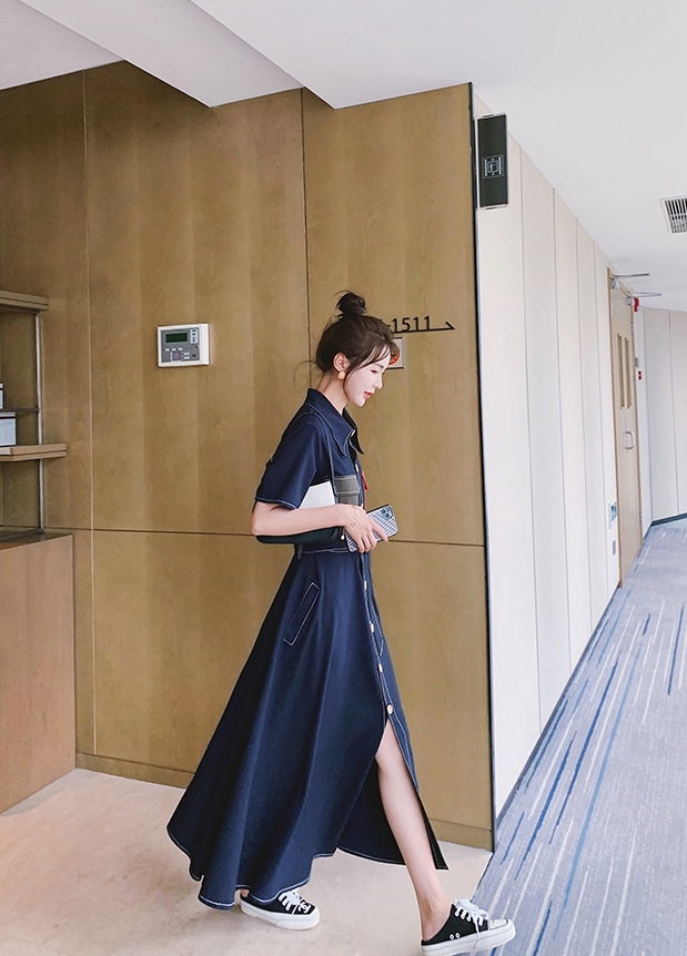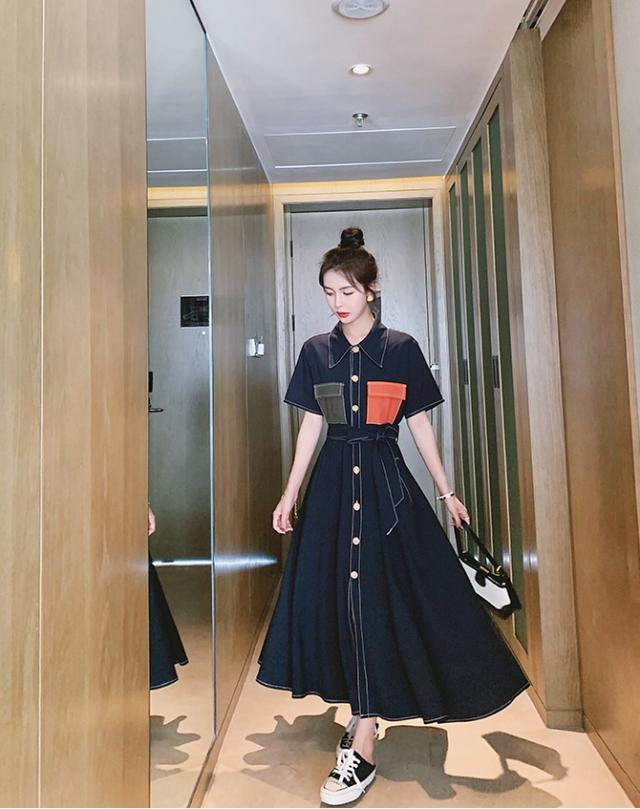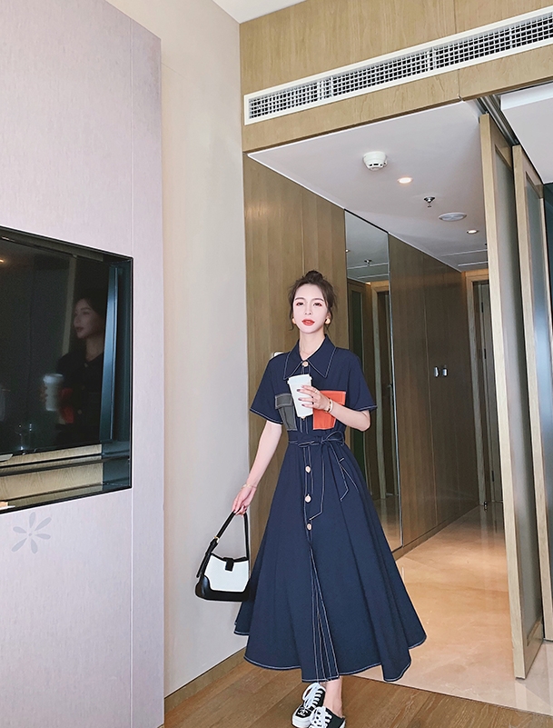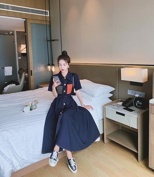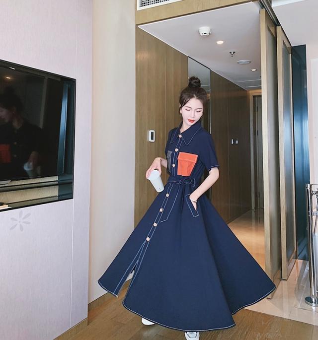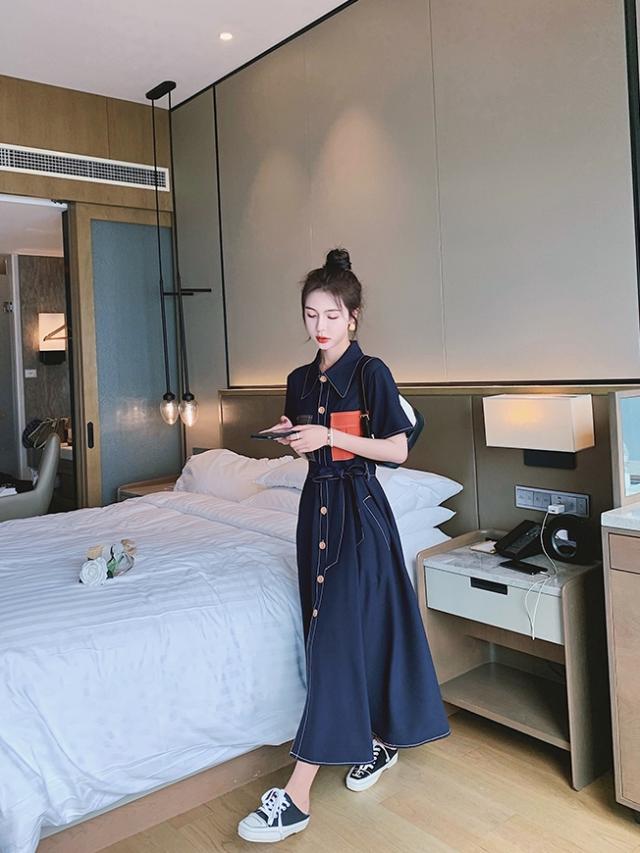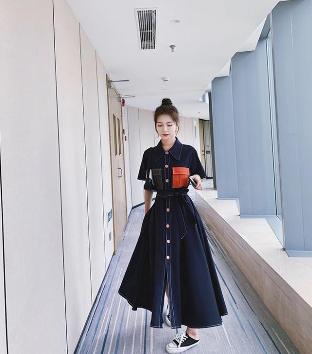 ステッチシャツワンピース ワンピース シャツワンピース ロング ロング丈 袖あり 半袖 襟付き フレア Aライン ウエストマーク ウエストリボン 前開き かわいい 大人可愛い きれいめ シンプル カジュアル おしゃれ お洒落 レトロ 大人可愛い 大人女子 こなれ感 ラフ ラブリー キュート ガーリー 個性的 主役級 存在感 無地 春 秋 10代 20代 30代 レディース 学生 通学 デート お出かけ 女子会 休日 着回し 普段使い 重ね着 韓国 韓国系 サイズ S M L XL 色展開 ネイビー