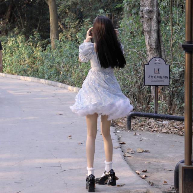 シースルー ワンピース ミニ丈 半袖 パフスリーブ フレア ワンピドレス 春 夏 スクエアネック シャーリング 胸元デザイン リボン Aライン チュール 透け感 フリル ふんわり かわいい きれいめ シンプル 個性的 キュート ラブリー ガーリー ロリータ 甘め お出かけ デート