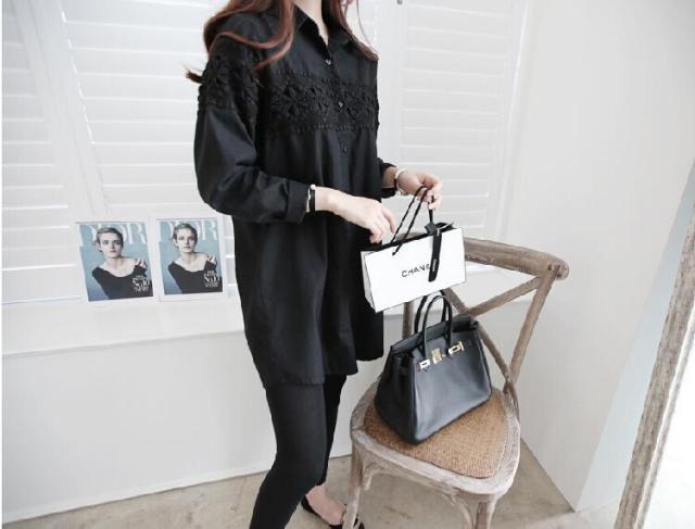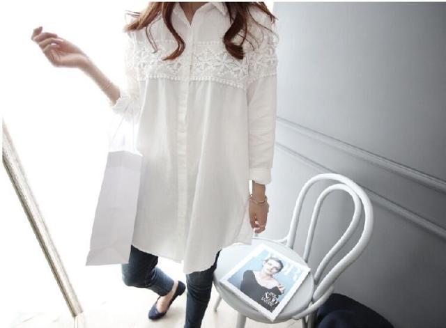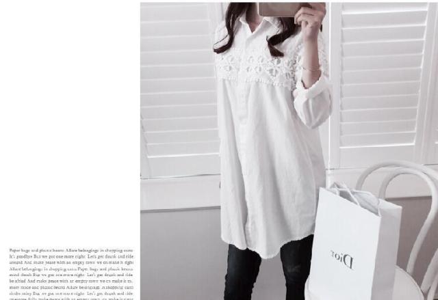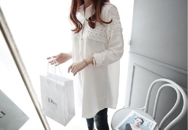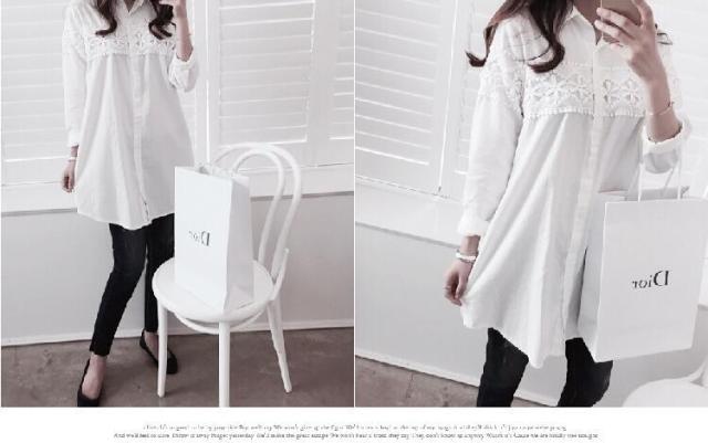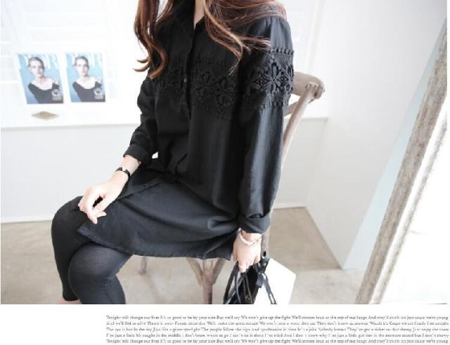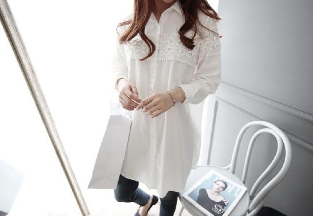 胸元に施されたレースが大人可愛いロングシャツ♪