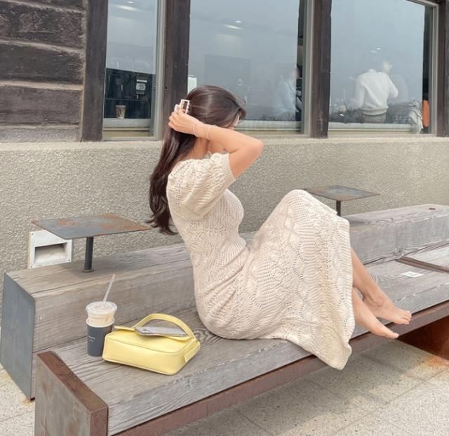 肌がほんのり透けるセンシュアルな大人の色香を纏うクロシェニットワンピース。