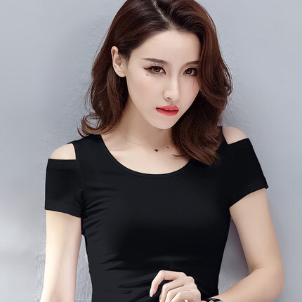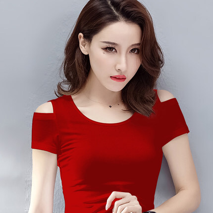 オープンショルダー Tシャツ レディース トップス オフショルダー風 半袖 ラウンドネック すっきり スリム タイト 細身 肌見せ 抜け感 綿 ポリエステル シンプル カジュアル セレカジ セクシー 大人っぽい おしゃれ 春 夏 普段使い デート お出かけ 着回し 黒 白 赤 黄色