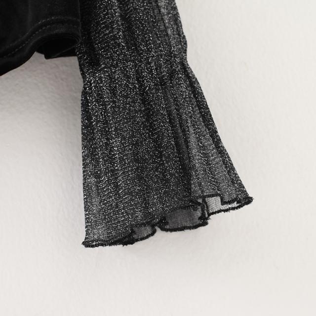 ラメ入りでさりげなくキラキラと輝くドッキングデザインのトップス。