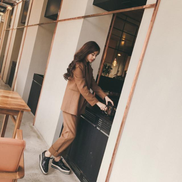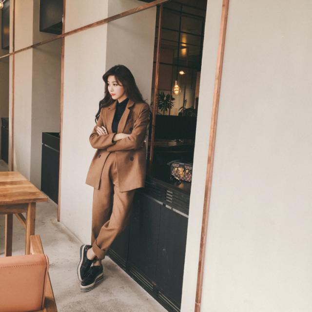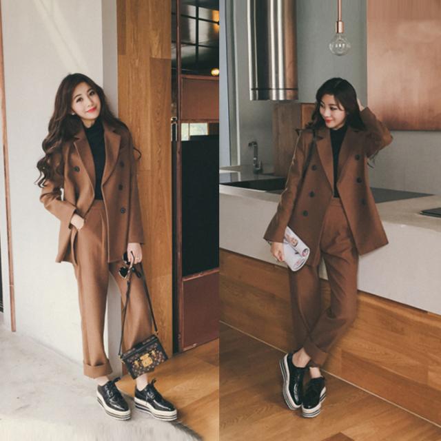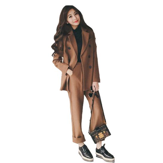 ウール セットアップ 上下セット ジャケット パンツ 2点セット ボトムス パンツ アウター ズボン 上着 スーツ ワイドパンツ ロング ロング丈 袖あり 長袖 Vネック 襟付き ポケット ハイウエスト 前開き ツーピース かわいい 大人可愛い シンプル カジュアル 大人 おしゃれ お洒落 大人女子 こなれ感 無地 春 秋 10代 20代 レディース 通勤 学生 通学 デート お出かけ 女子会 休日 旅行 着回し 普段使い 重ね着 韓国 韓国系 オルチャン ゆったり サイズ L XL 茶色 ブラウン