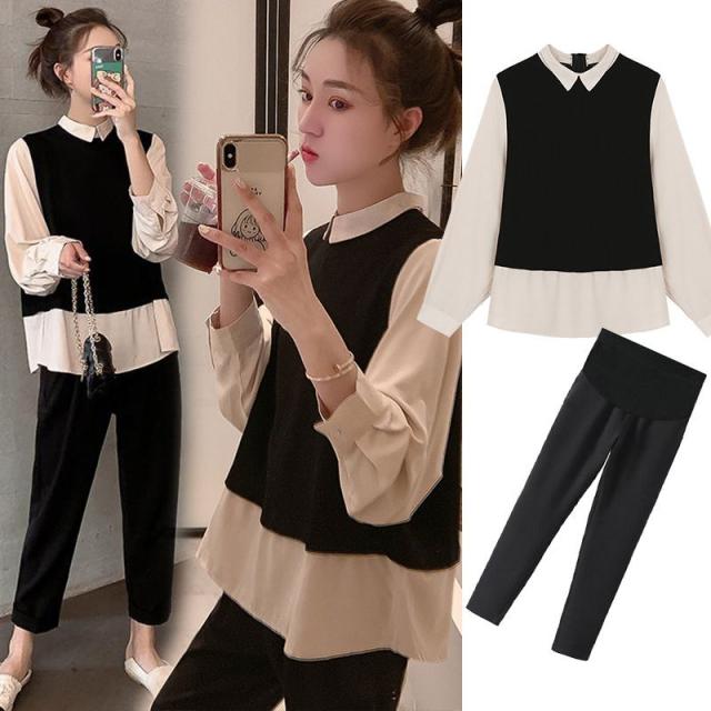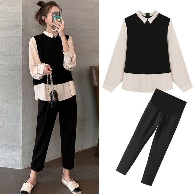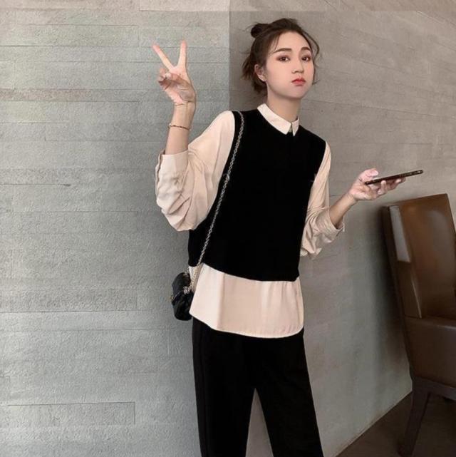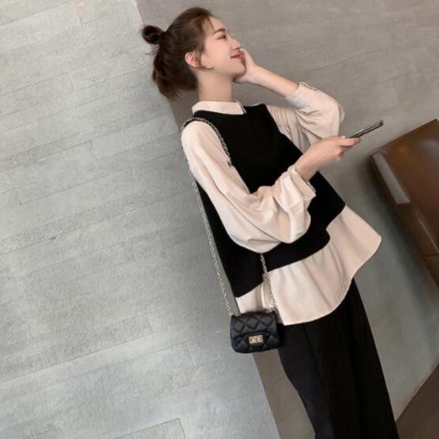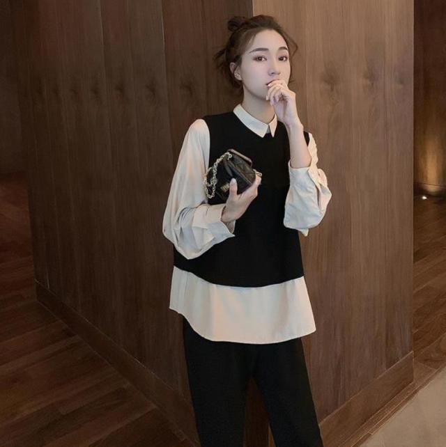 セットアップ 上下セット 重ね着風 シャツ パンツ 2点セット トップス ボトムス プルオーバー ズボン ワイドパンツ ロング ロング丈 袖あり 長袖 襟付き ファスナー ウエストゴム 伸縮性 ツーピース かわいい 大人可愛い シンプル カジュアル 大人 おしゃれ お洒落 大人女子 無地 春 秋 10代 20代 30代 レディース ママ マタニティ 通勤 学生 通学 デート お出かけ 女子会 休日 旅行 着回し 普段使い 重ね着 韓国 体系カバー ゆったり 大きいサイズ M L 2XL 黒 ブラック