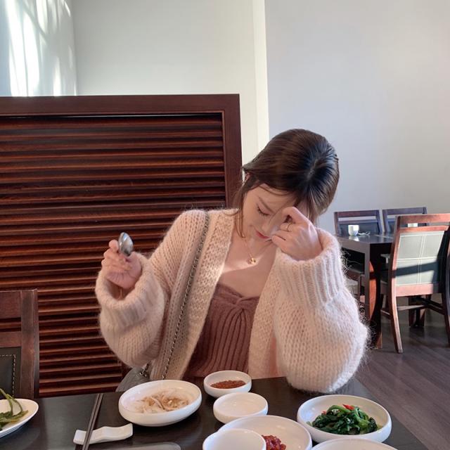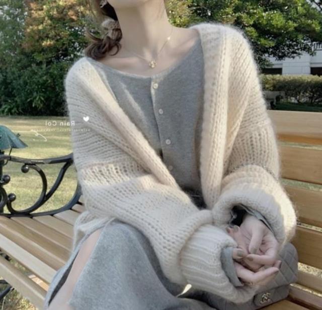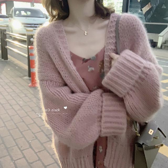 モヘアニット カーディガン トップス ミディアム丈 袖あり 長袖 ボリューム袖 ドロップショルダー 萌袖 襟なし ふわふわ 前開き ニット ウール 厚手 かわいい 大人可愛い シンプル カジュアル 大人 おしゃれ お洒落 大人女子 ラブリー 無地 春 秋 10代 20代 30代 レディース 通勤 学生 通学 デート お出かけ 女子会 休日 旅行 着回し 普段使い 重ね着 韓国 韓国系 オルチャン 暖かい モテ ゆったり ゆる サイズ S M L 色展開 茶色 ブラウン ピンク アプリコット