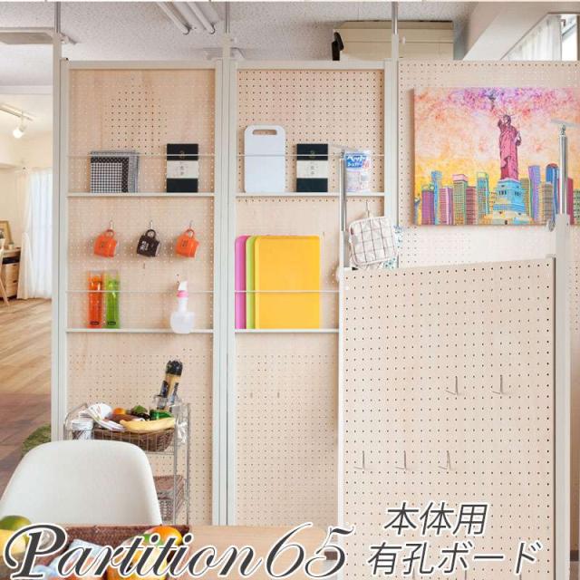 パーテーション 突っ張りスリム つっぱり ペグボード おしゃれ 突っ張りラック パーティション ラック 突っ張り棒 衝立 間仕切り 有孔ボード 65 本体