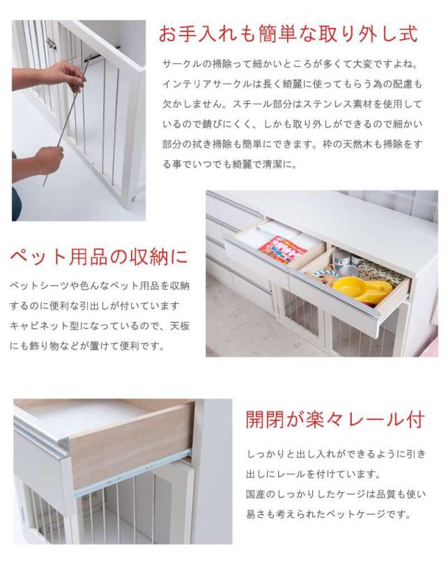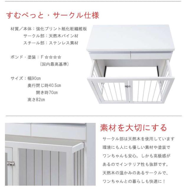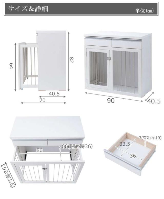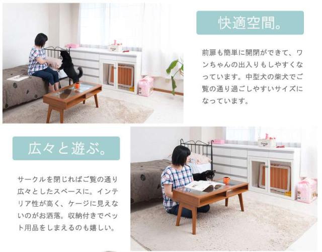 ペットサークル 犬用 おしゃれ 小型犬 中型犬 折りたたみ キャビネット 木製 収納 北欧 完成品 幅90 カウンター下収納 引き出し 日本製 ペットケージ 犬