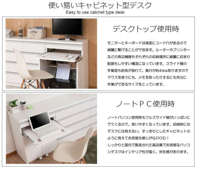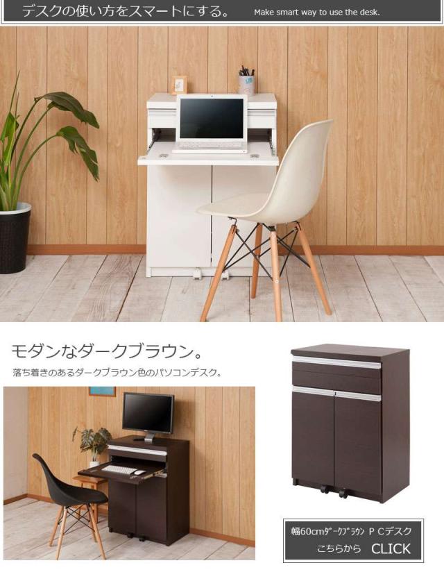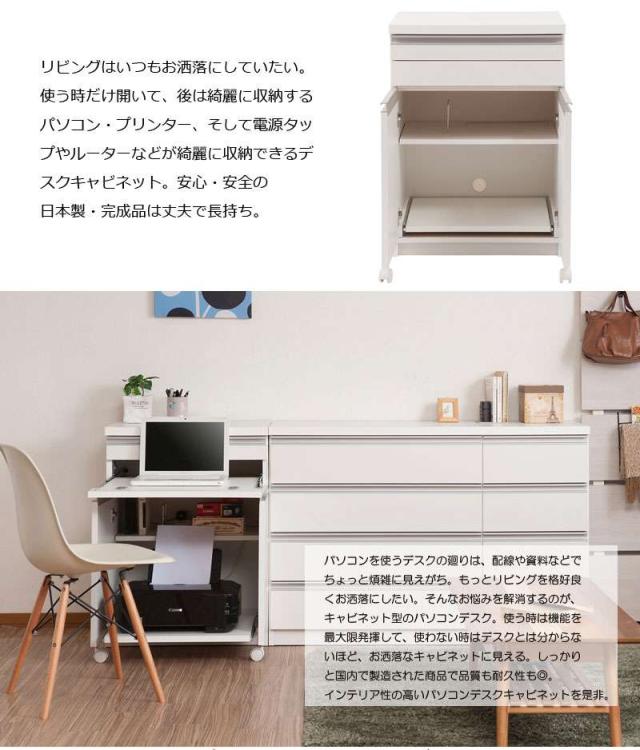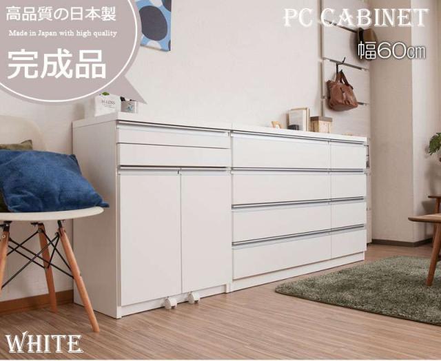 パソコンデスク デスク 幅60 収納 おしゃれ 完成品 日本製 スリム ハイタイプ 机 プリンター収納 パソコン PCデスク 折りたたみ キャビネット ホワイト