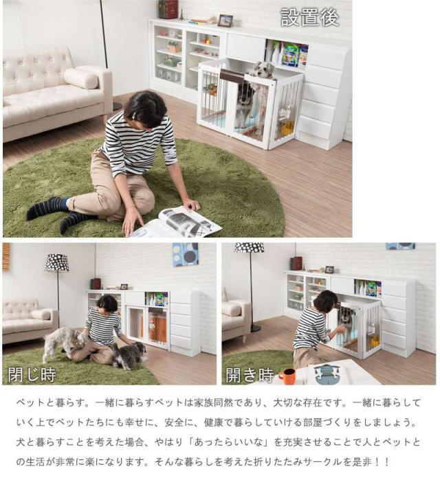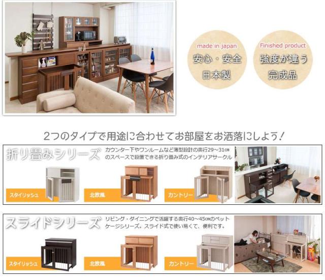 ペットサークル 犬用 おしゃれ 小型犬 中型犬 折りたたみ キャビネット 木製 収納 北欧 完成品 幅90 カウンター下収納 棚 日本製 ペットケージ 犬