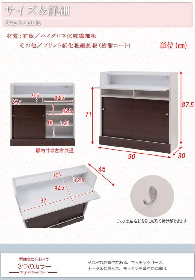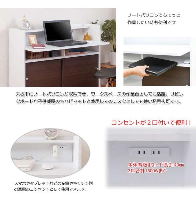 デスク スリム コンセント 収納 子供 カウンター下収納 カウンター 90 薄型 大容量 食器棚 奥行30 幅90 机 おしゃれ ロータイプ 引き戸 扉 木製
