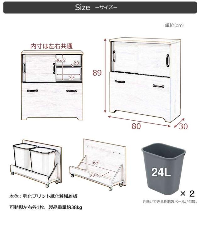 キッチンカウンター 80 収納 ゴミ箱 キャスター 目隠し 天板 分別 レンジ台 おしゃれ レンジボード ロータイプ キッチン 大容量 台所 引き戸