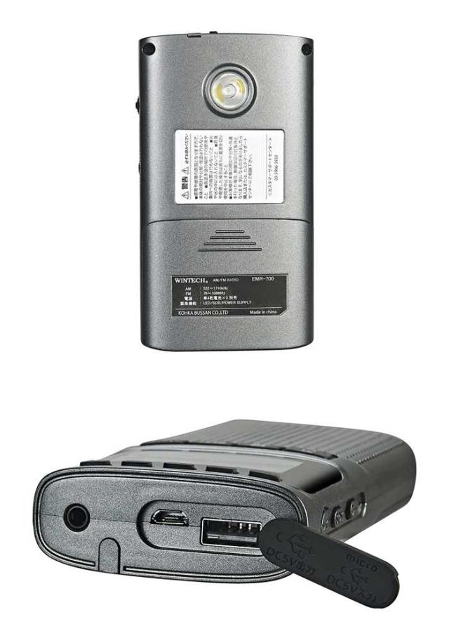 USB出力端子(緊急時電源出力):5V/0.5A。USB入力端子(電源供給用):5VmicroUSB。SOS機能(緊急サイレン※ライト連動)。非常用LEDライト。AM/FM受信対応デジタルチューニングラジオ。ATS選局、手動選局。プリセットメモリ機能(AM/FM最大50局)。お気に入りボタン(5CH)。音声最大出力(本体スピーカー):1W。伸縮稼働型ロッドアンテナ。AM/FMラジオ連続使用時間目安(アルカリ乾電池、内蔵スピーカー音量中):約16時間程度。AM/FMラジオ連続使用時間目安(アルカリ乾電池、イヤホン音量最大):約19時間程度。※ラジオ使用時間は使用環境により変化します。時計機能搭載。アラーム機能(AM/FM/ブザーアラーム)スヌーズ機能付き。スリープ機能搭載。誤動作防止ロック機能搭載。操作時液晶ブルーバックライト点灯。イヤホン端子搭載。