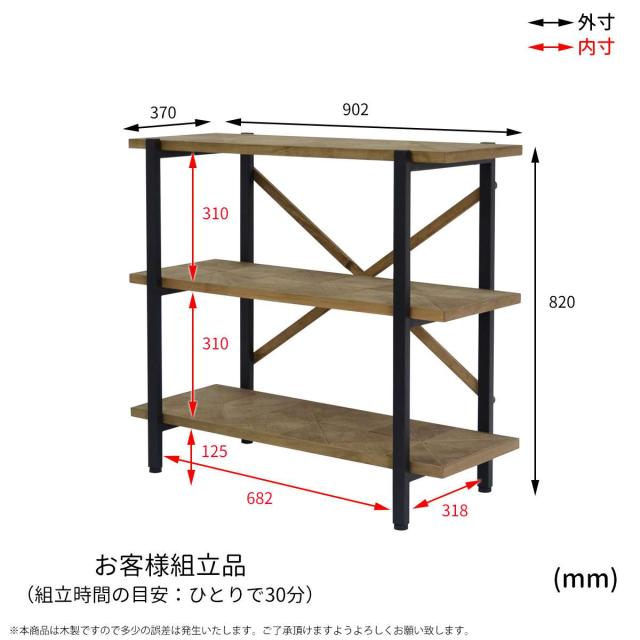 ラック オープンラック 木製 薄型 棚 幅90 3段 アイアン 小型 90 収納 おしゃれ スリム スチール リビング シェルフ 奥行35 本棚