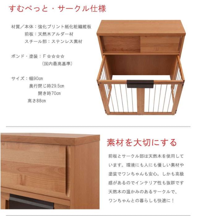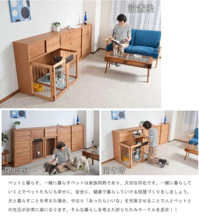 ペットサークル 犬用 おしゃれ 小型犬 中型犬 折りたたみ キャビネット 木製 収納 北欧 完成品 幅90 カウンター下収納 引き戸 日本製 ペットケージ 犬