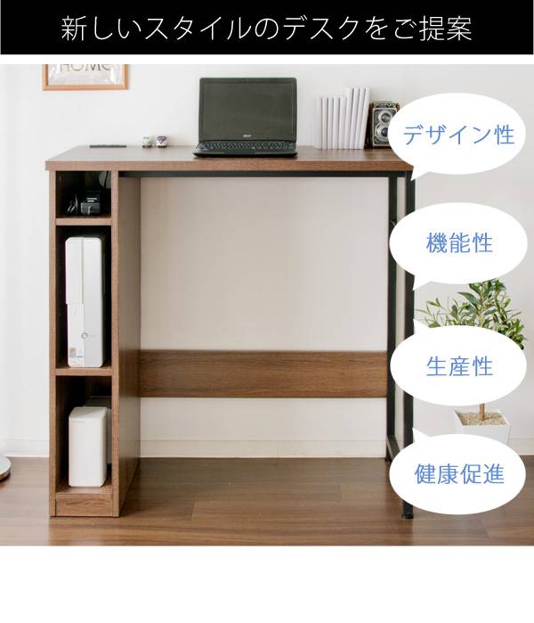 スタンディングデスク 立ち机 高さ パソコンデスク 収納 デスク 在宅 木製 机 PCデスク コンパクト 棚 北欧 テレワーク おしゃれ 薄型 シンプル