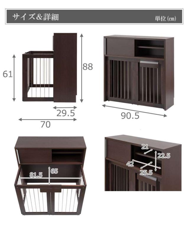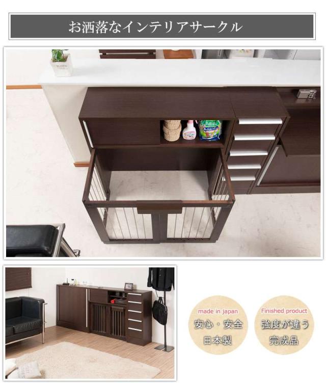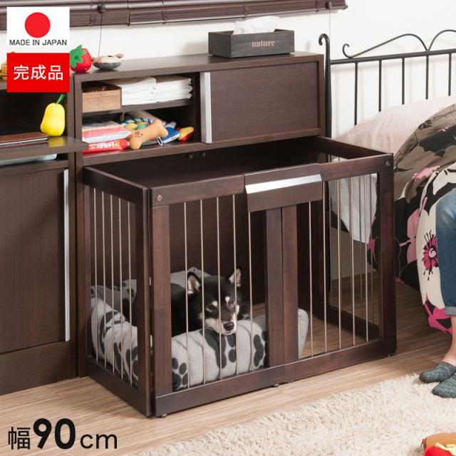 ペットサークル 犬用 おしゃれ 小型犬 中型犬 折りたたみ キャビネット 木製 収納 北欧 完成品 幅90 カウンター下収納 棚 日本製 ペットケージ 犬