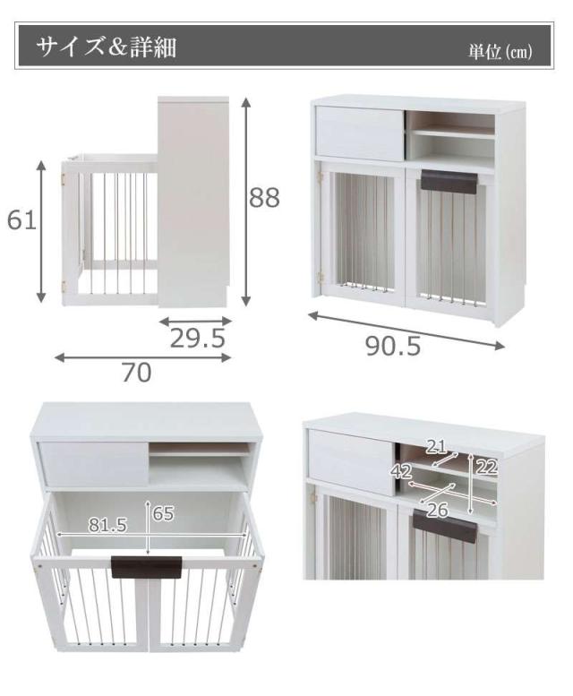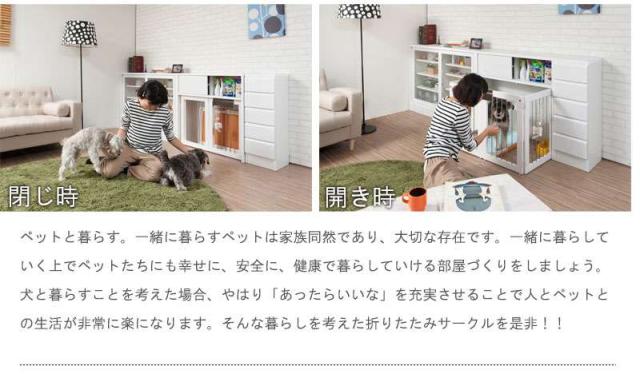 ペットサークル 犬用 おしゃれ 小型犬 中型犬 折りたたみ キャビネット 木製 収納 北欧 完成品 幅90 カウンター下収納 棚 日本製 ペットケージ 犬