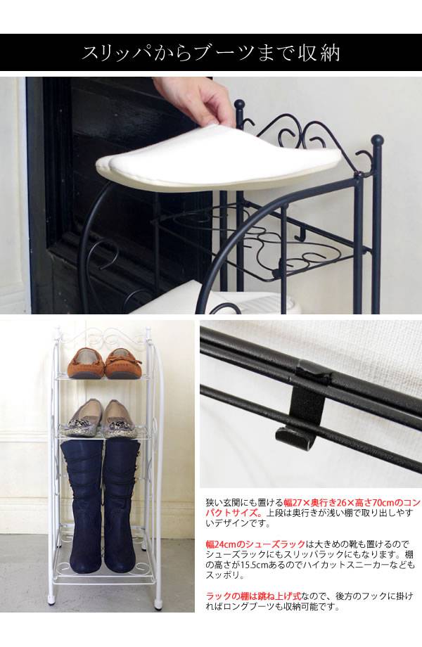 シューズラック スリム 薄型 おしゃれ ラック 幅30 アイアン アンティーク 低い ロータイプ シューズボックス 収納 スチール 4段 棚 かわいい