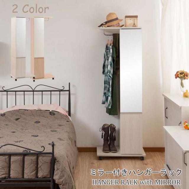 ハンガーラック 鏡 ミラー 洋服掛け キャスター 木製 スリム 幅60 頑丈 棚付き 棚 収納付き 鏡付き 大容量 丈夫 収納 おしゃれ コートハンガー